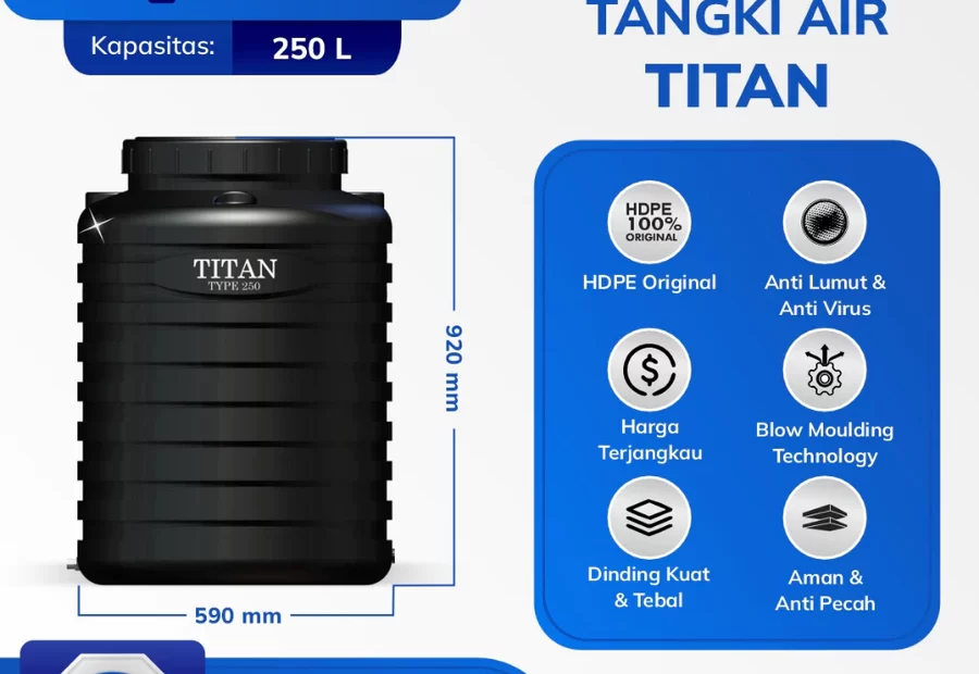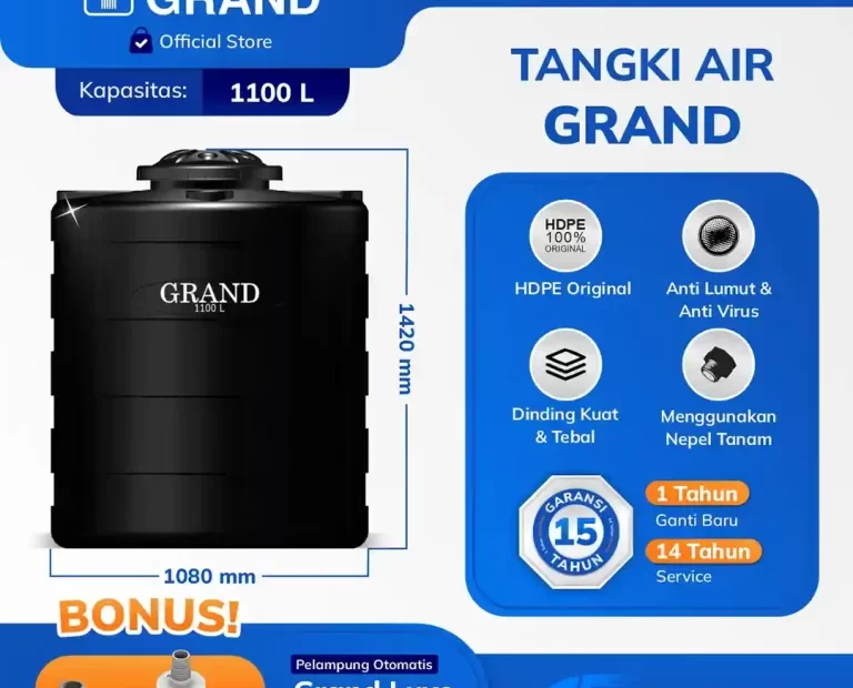 Tangki Air TITAN dari GRAND Official Store adalah solusi penyimpanan air premium yang dirancang untuk kekuatan, keamanan, dan kehigienisan maksimal.… Tangki Tandon Toren Air Titan Grand