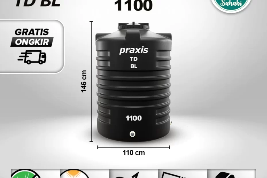 Kualitas : Terbuat dari Bahan Baku Plastik HDPE Murni dengan 2 lapisan ,menjamin kualitas terbaik dengan Mesin Tekhnologi Routamold. 2… Tangki Tandon Toren Air PRAXIS TD BLOW
