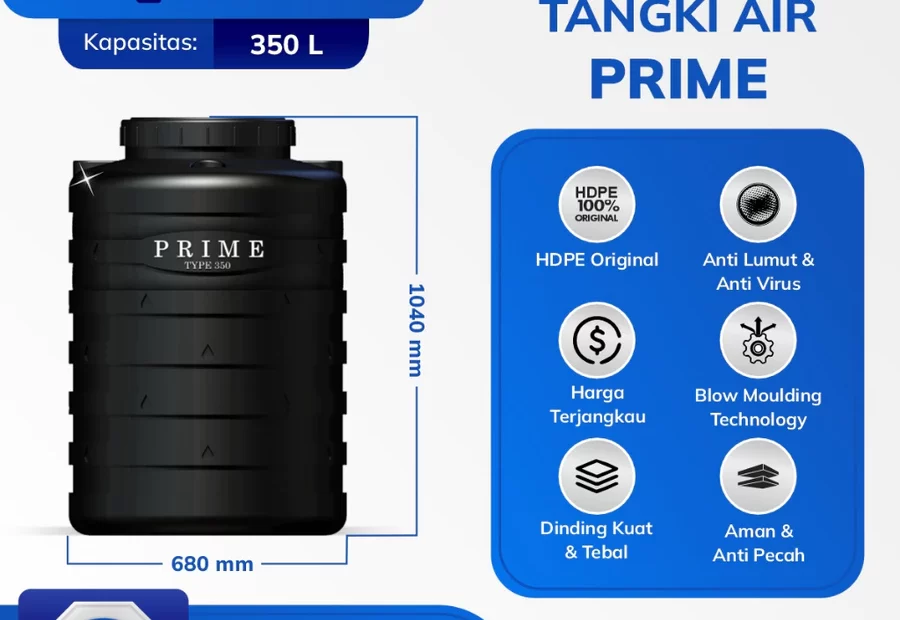 Tangki Air PRIME dari GRAND adalah solusi penyimpanan air bersih yang dirancang dengan kokoh dan dilengkapi teknologi canggih untuk menjamin… Tangki Tandon Toren Air Prime Grand